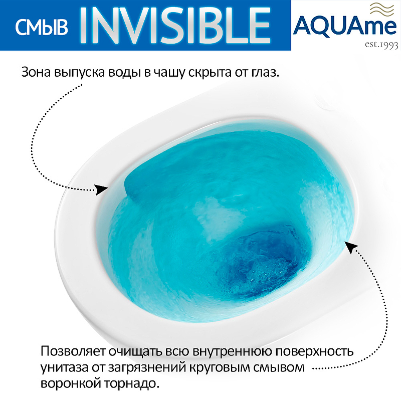 Унитаз подвесной БЕЗОБОДКОВЫЙ AQUAme смыв Торнадо INVISIBLE AQM2002PRO