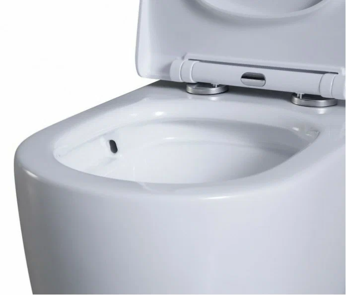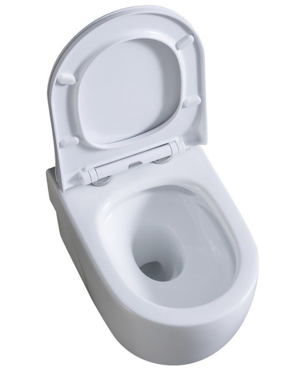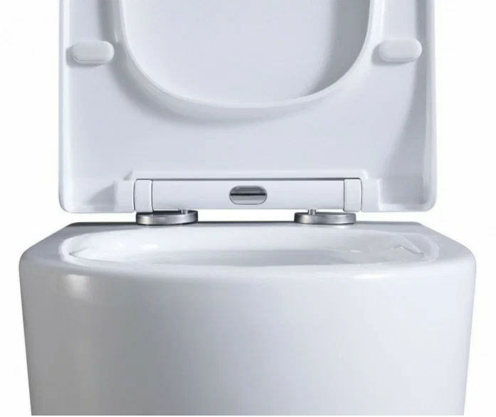Оснащение: чаша унитаза с вихревым смывом, безободковая система антивсплеск, сиденье с микролифтом из дюропласта, быстросъёмное с металлическим креплением