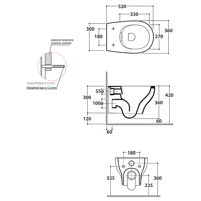 Унитаз подвесной БЕЗОБОДКОВЫЙ Globo Grace GRS03BI