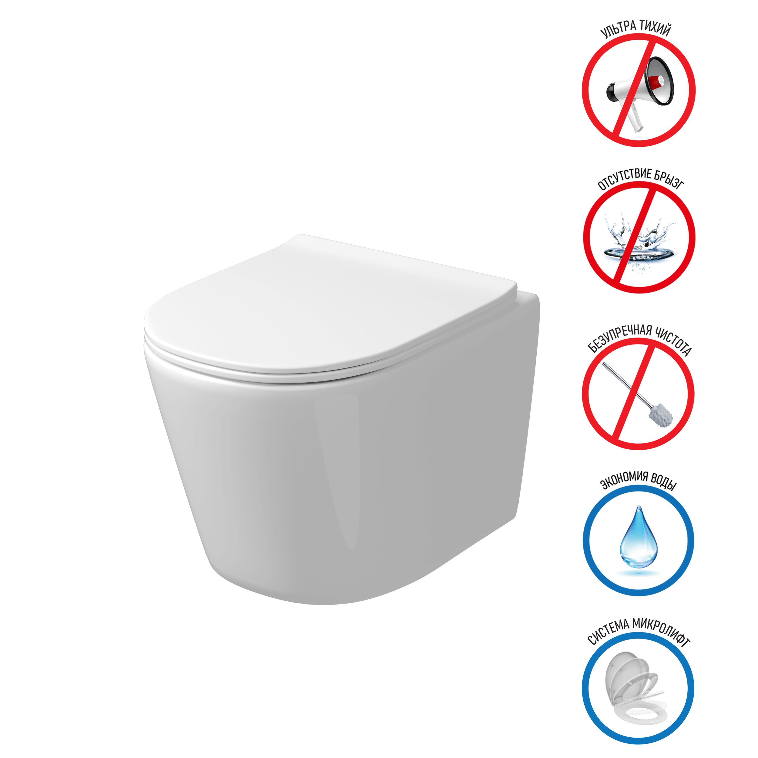 Унитаз подвесной БЕЗОБОДКОВЫЙ Grossman (смыв Торнадо) белый GR-4477SQ
