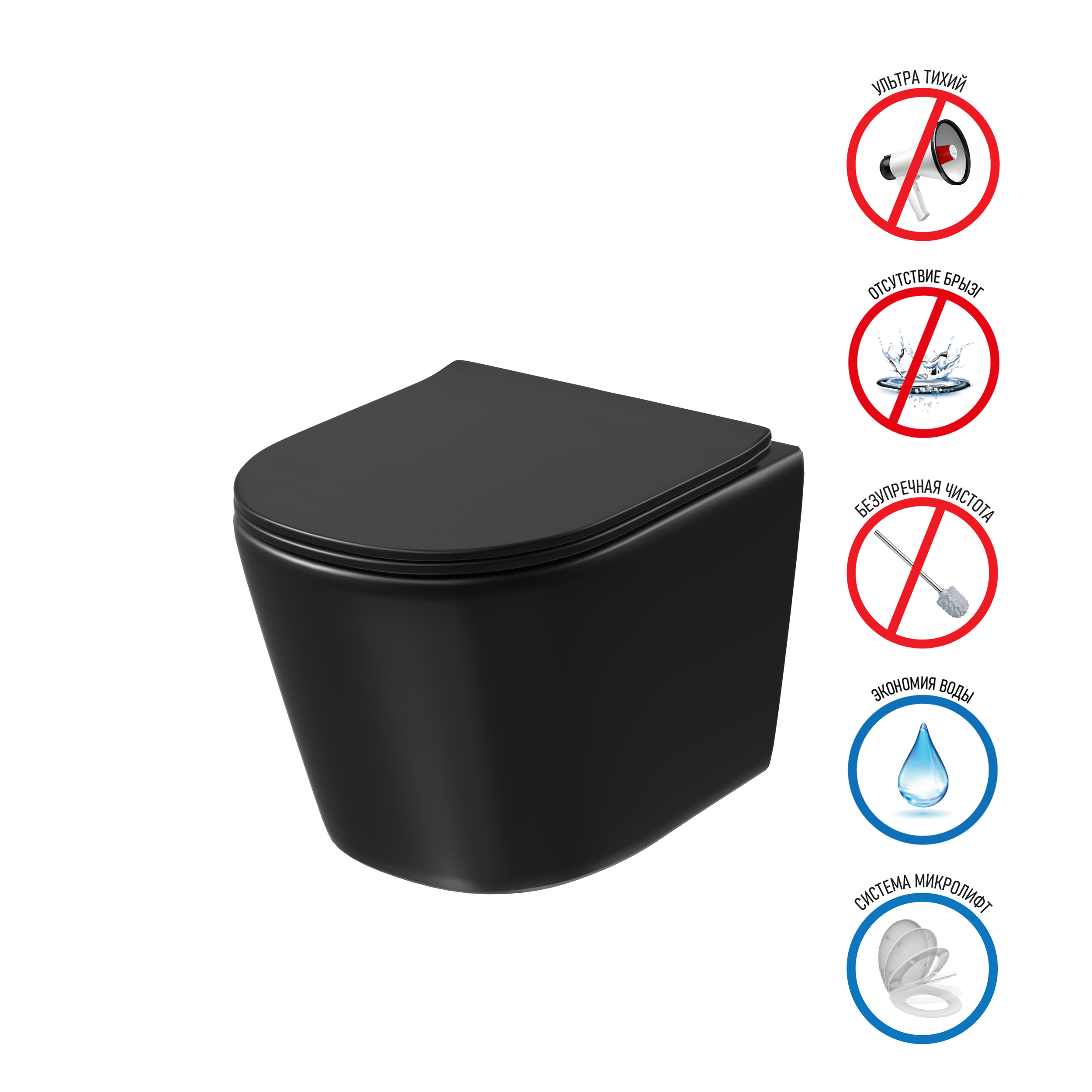 Унитаз подвесной БЕЗОБОДКОВЫЙ Grossman (смыв Торнадо) черный матовый GR-4477BMSQ