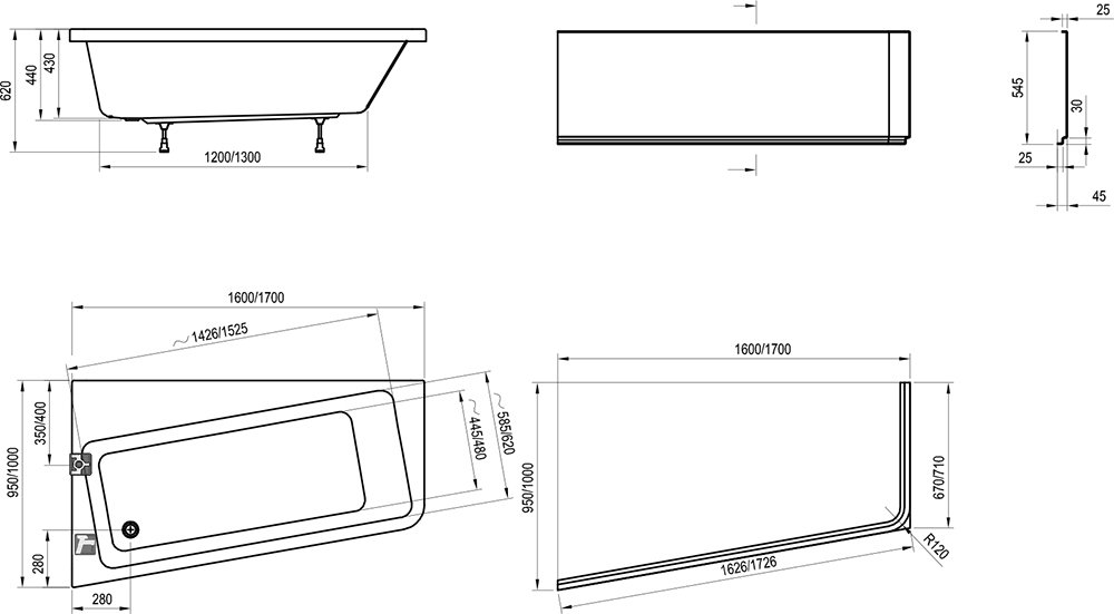 Акриловая асимметричная ванна Ravak 10° 160х95 см белый L/R C831000000/ C841000000