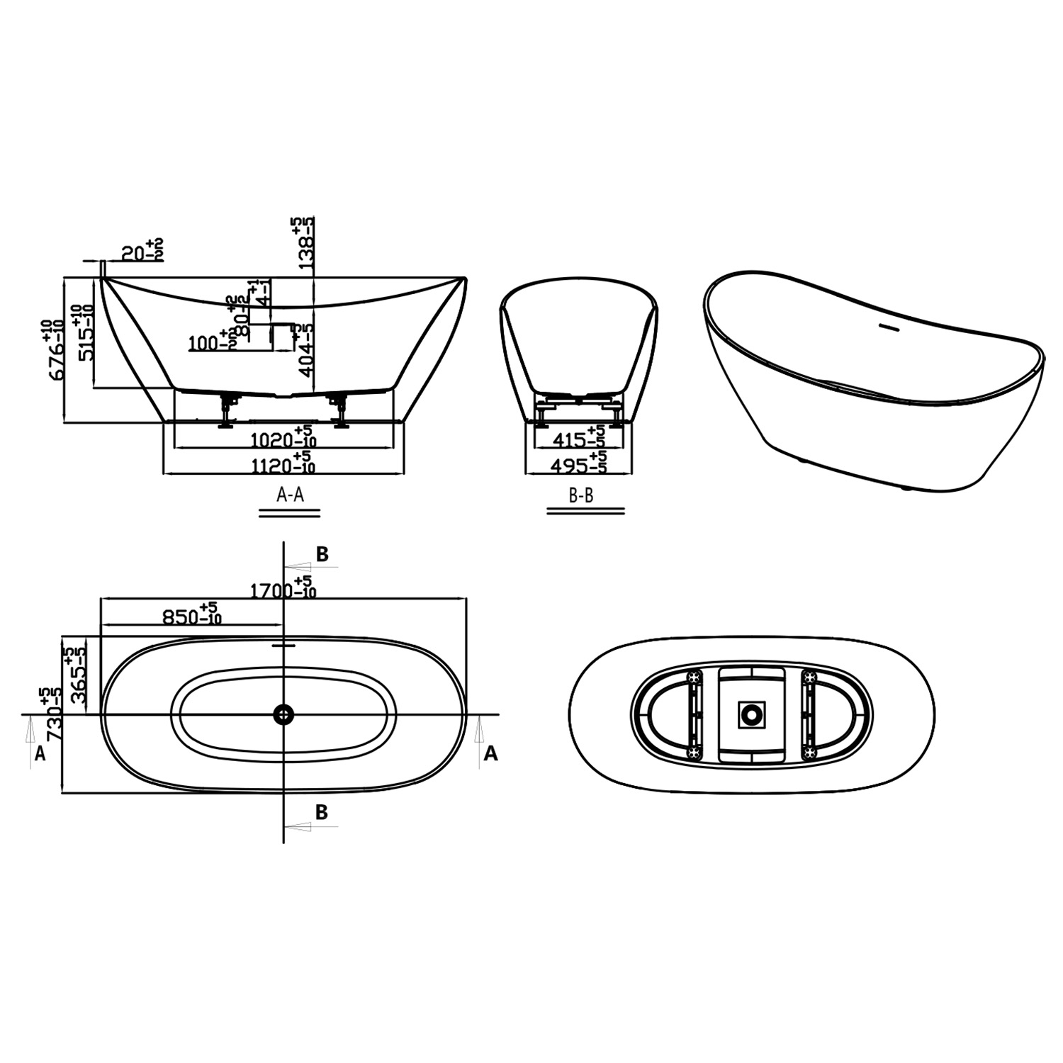 Акриловая отдельностоящая ванна Creo Ceramique Tours TO5001 (170х73х67,5) 00080519