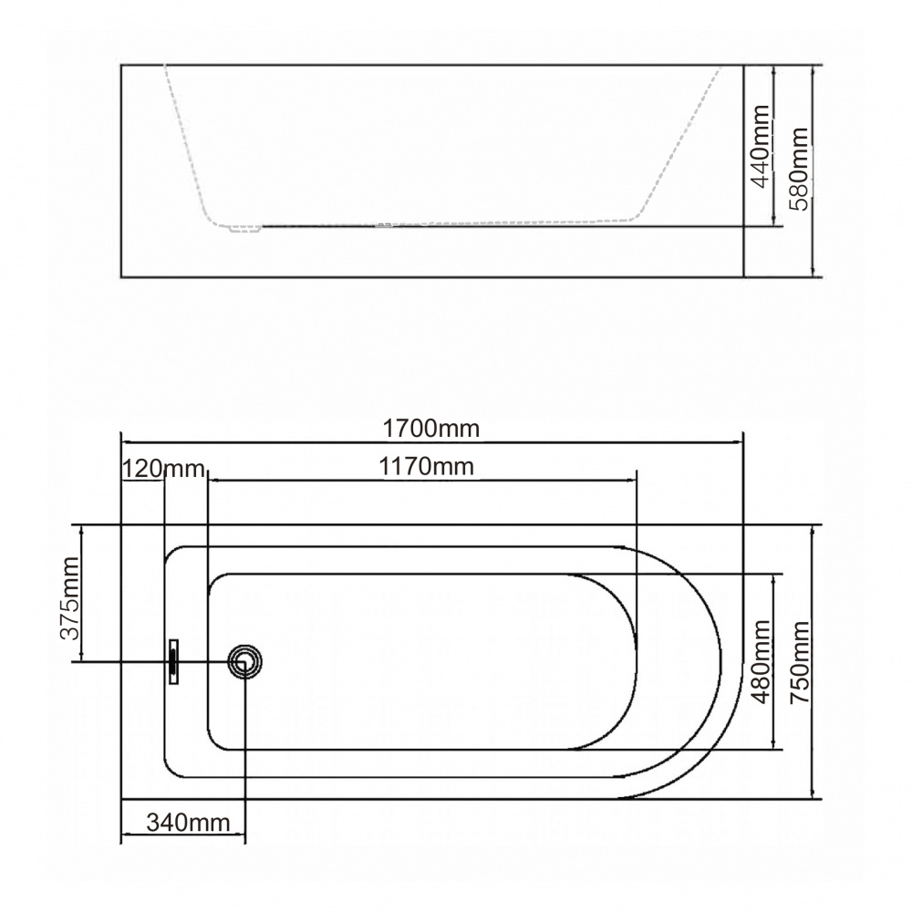 Акриловая отдельностоящая ванна Swedbe Vita 170х75 см 8842