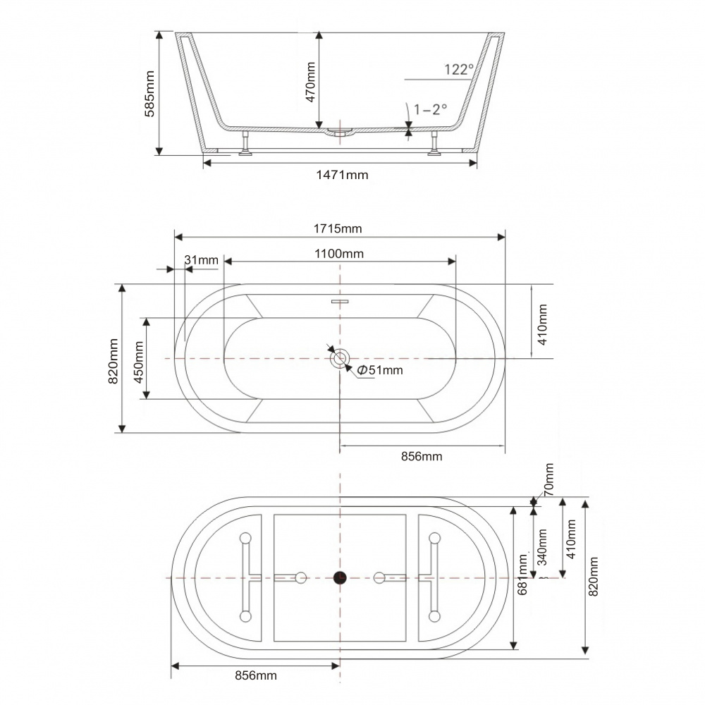 Акриловая отдельностоящая ванна Swedbe Vita 171,5х80 см 8800