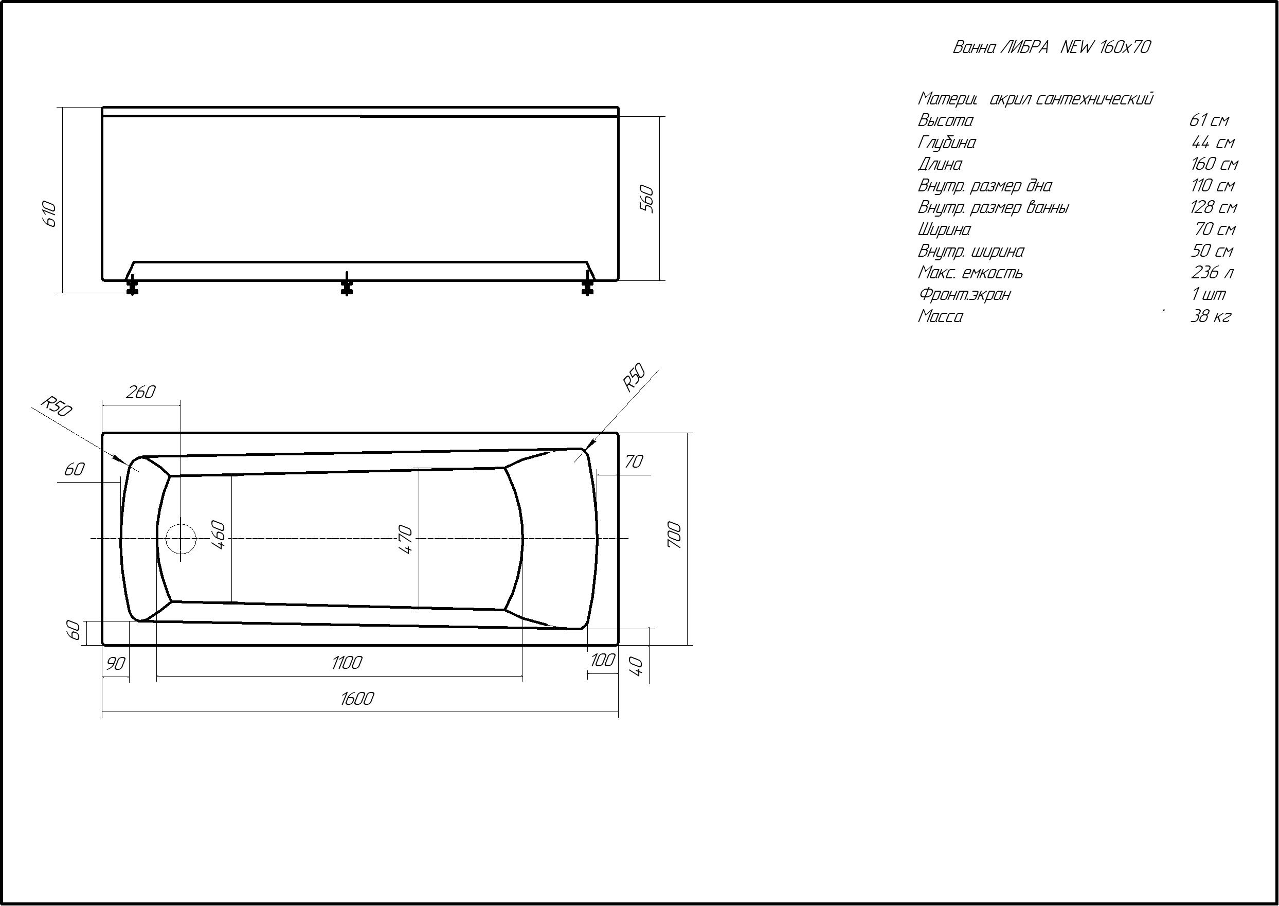 - Акриловая прямоугольная ванна Акватек Либра NEW 160x70 см LIB160N-0000019