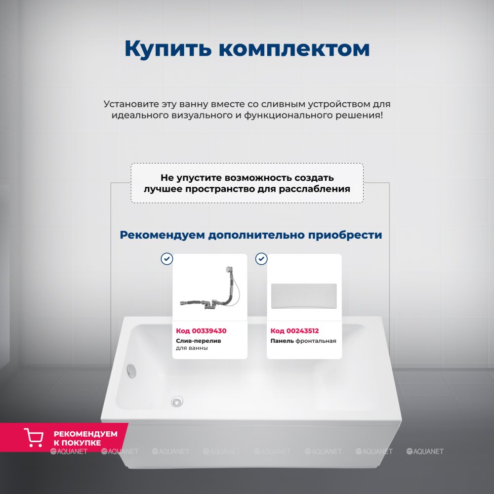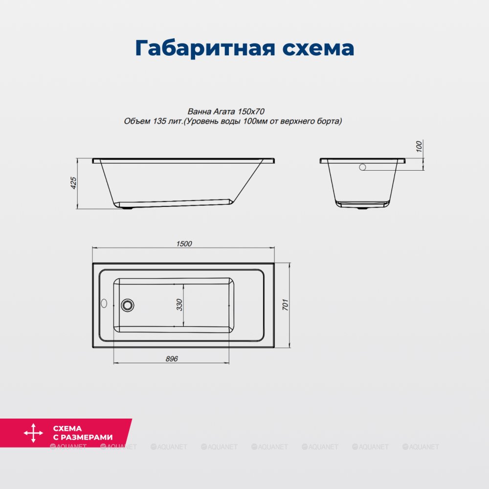 Акриловая прямоугольная ванна Aquanet Agata 150x70 см с каркасом 352892