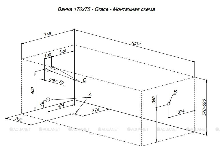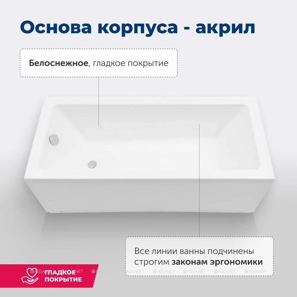 Акриловая прямоугольная ванна Aquanet Grace 170x75 см, с каркасом 312397