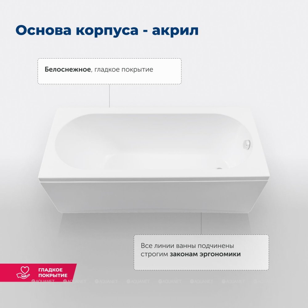 Акриловая прямоугольная ванна Aquanet Nexus 180х80 см, с каркасом 362777