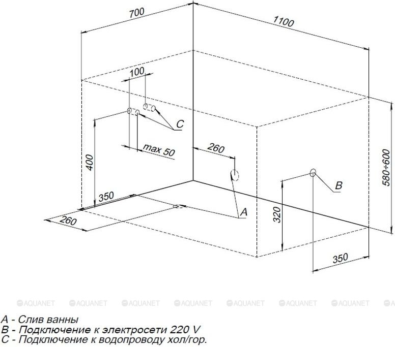 | Оснащение | Ванна, каркас |