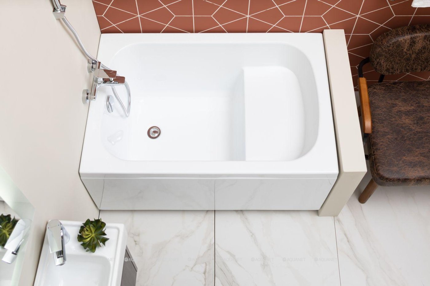 Акриловая прямоугольная ванна с сиденьем Aquanet Seed 110x70 см, с каркасом 246173