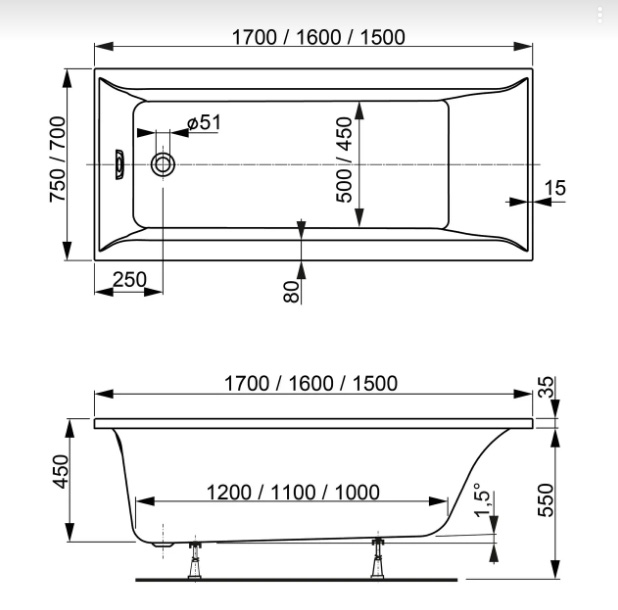 Акриловая прямоугольная ванна Vagnerplast Veronela 170х75 см VPBA170VEA2X-04