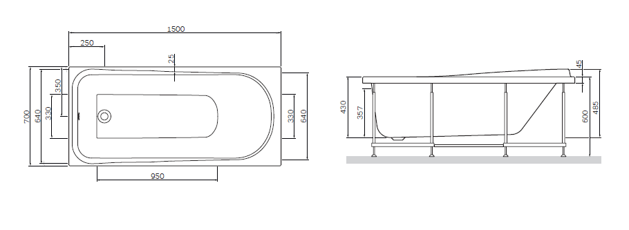 Комплектация: ванна+каркас, без слива-перелива