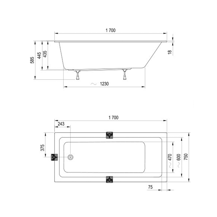 На ванну можно установить шторку для прямоугольных ванн CVS2, CVS1, VS2, VS3, VS5, PVS1, NVS1, BVS1, BVS2 или дверь AVDP3. К ванне можно докупить переднюю, боковую панели и сточный комплект.