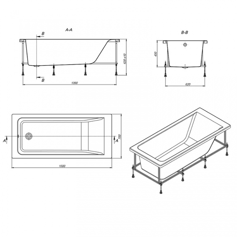 Акриловая ванна Roca Easy 150х70 см ZRU9302904