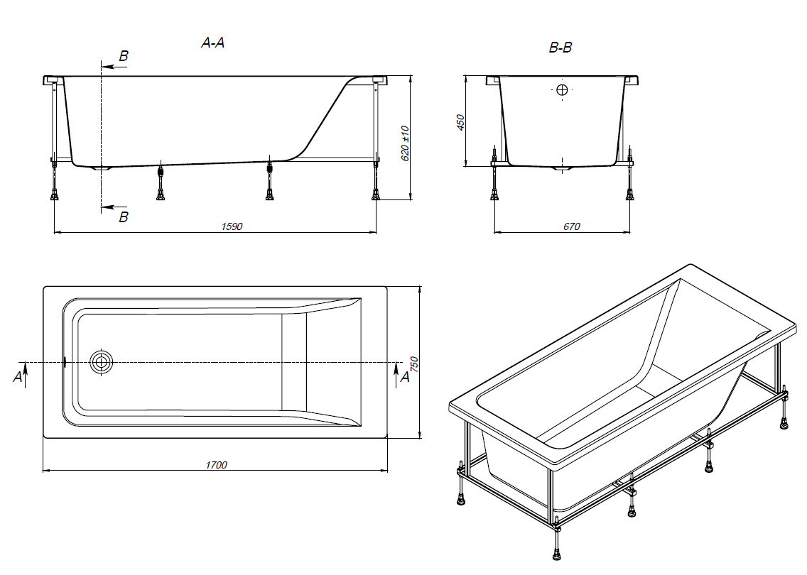 Акриловая ванна Roca Easy 170х75 см ZRU9302899