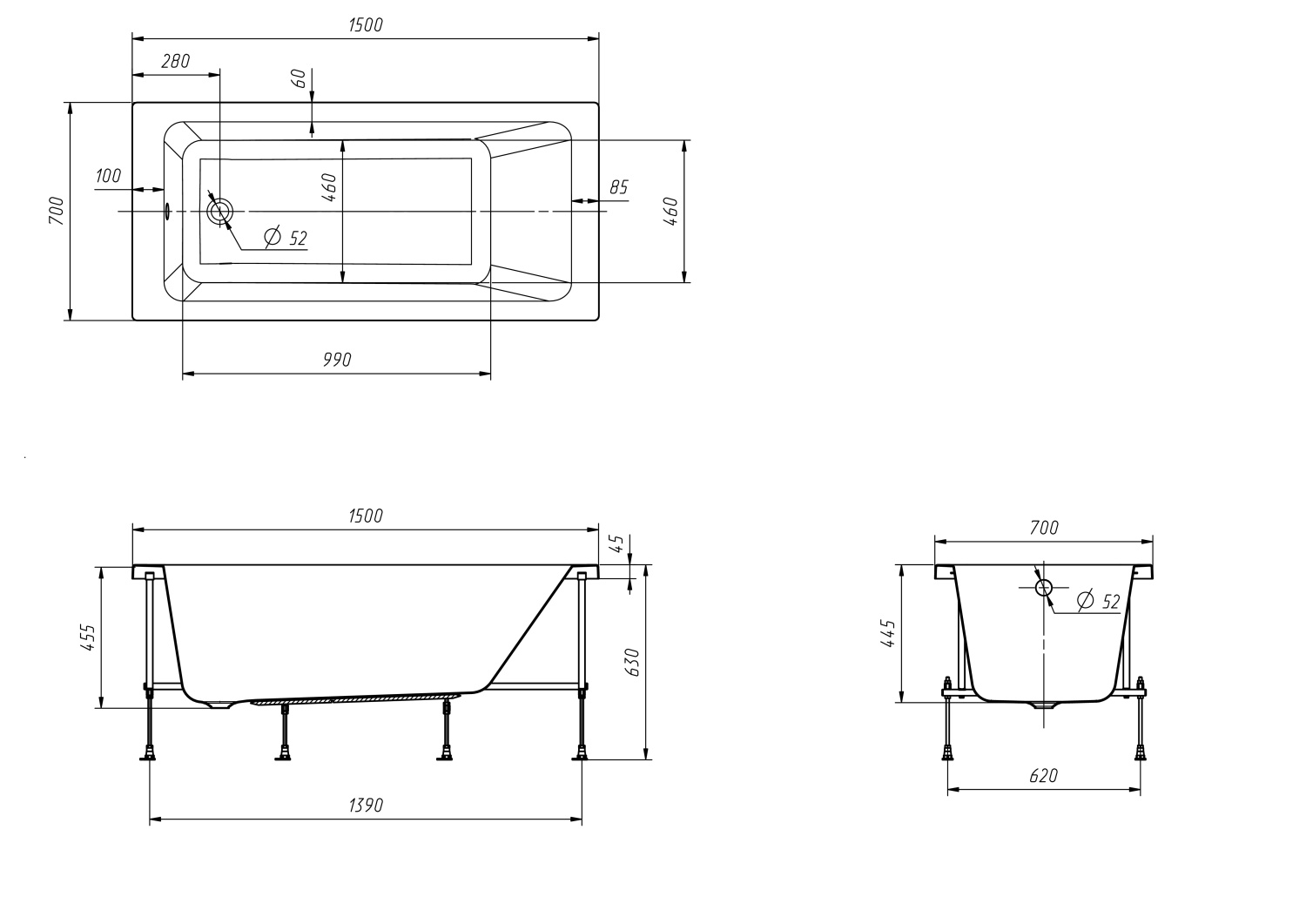 Акриловая ванна Roca Leon 150х70 см 248659000