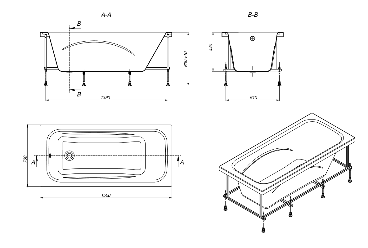 Акриловая ванна Roca Line 150х70 см ZRU9302982