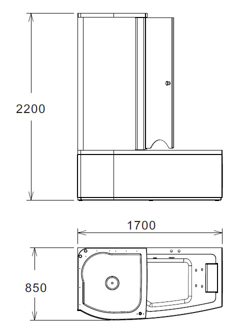 - прямоугольная ванна, совмещенная с душевой кабиной