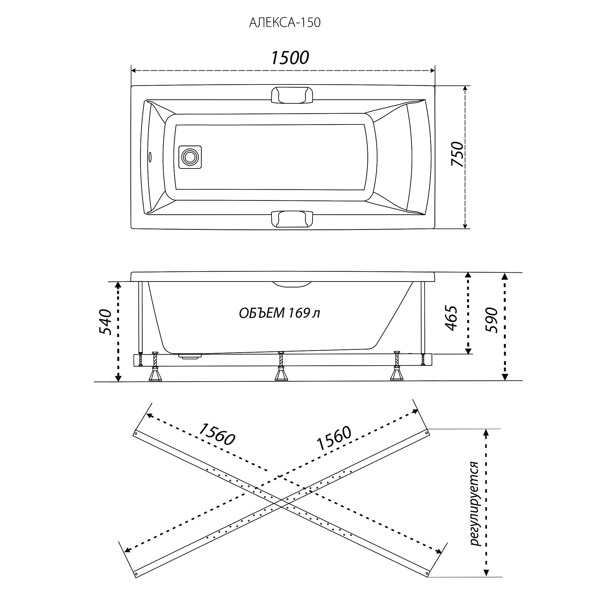 !!! Ножки для ванны или каркас, экран, слив-перелив с сифоном и карниз приобретаются отдельно