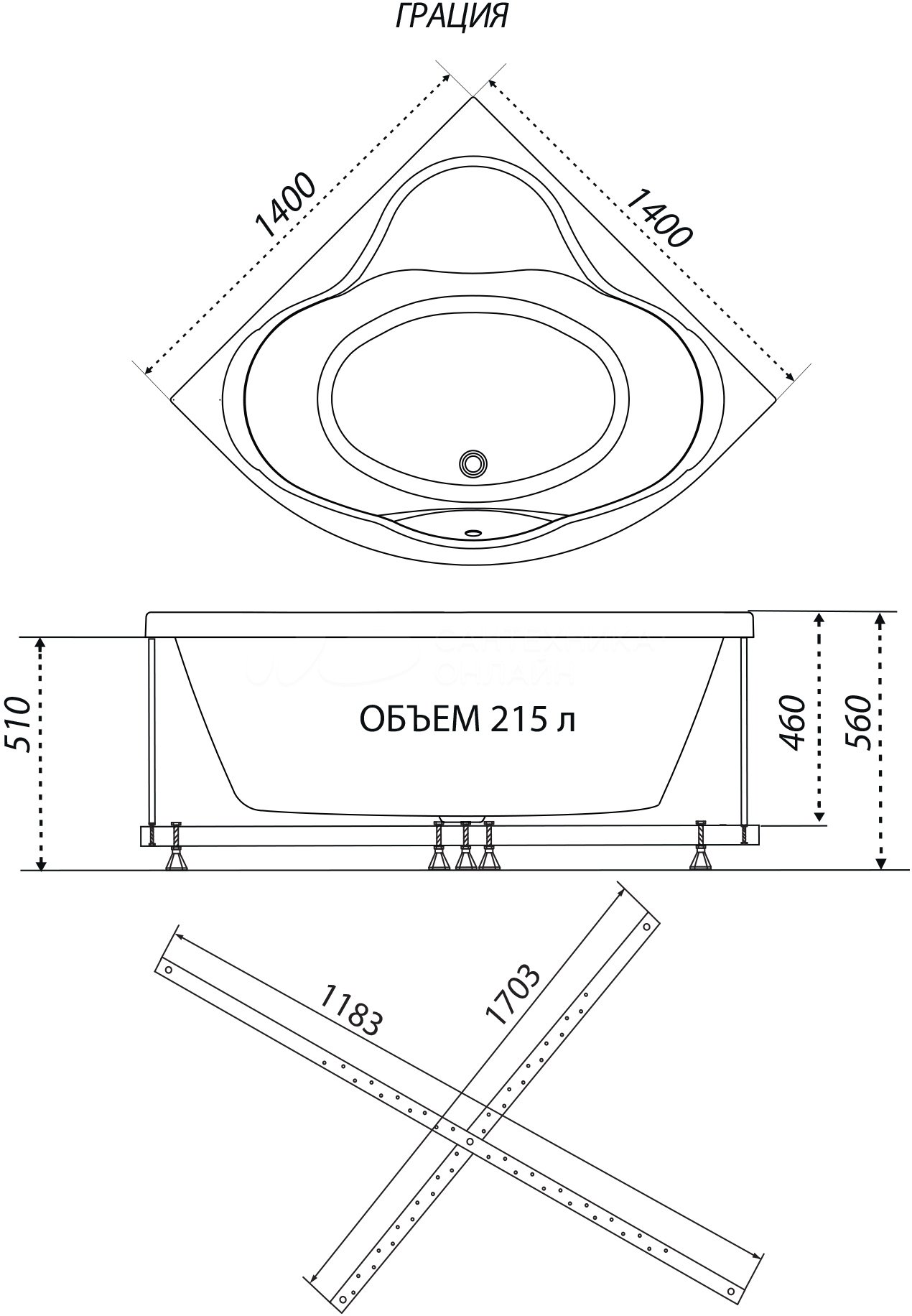 !!! Каркас для ванны, экран, слив-перелив с сифоном и карниз приобретаются отдельно
