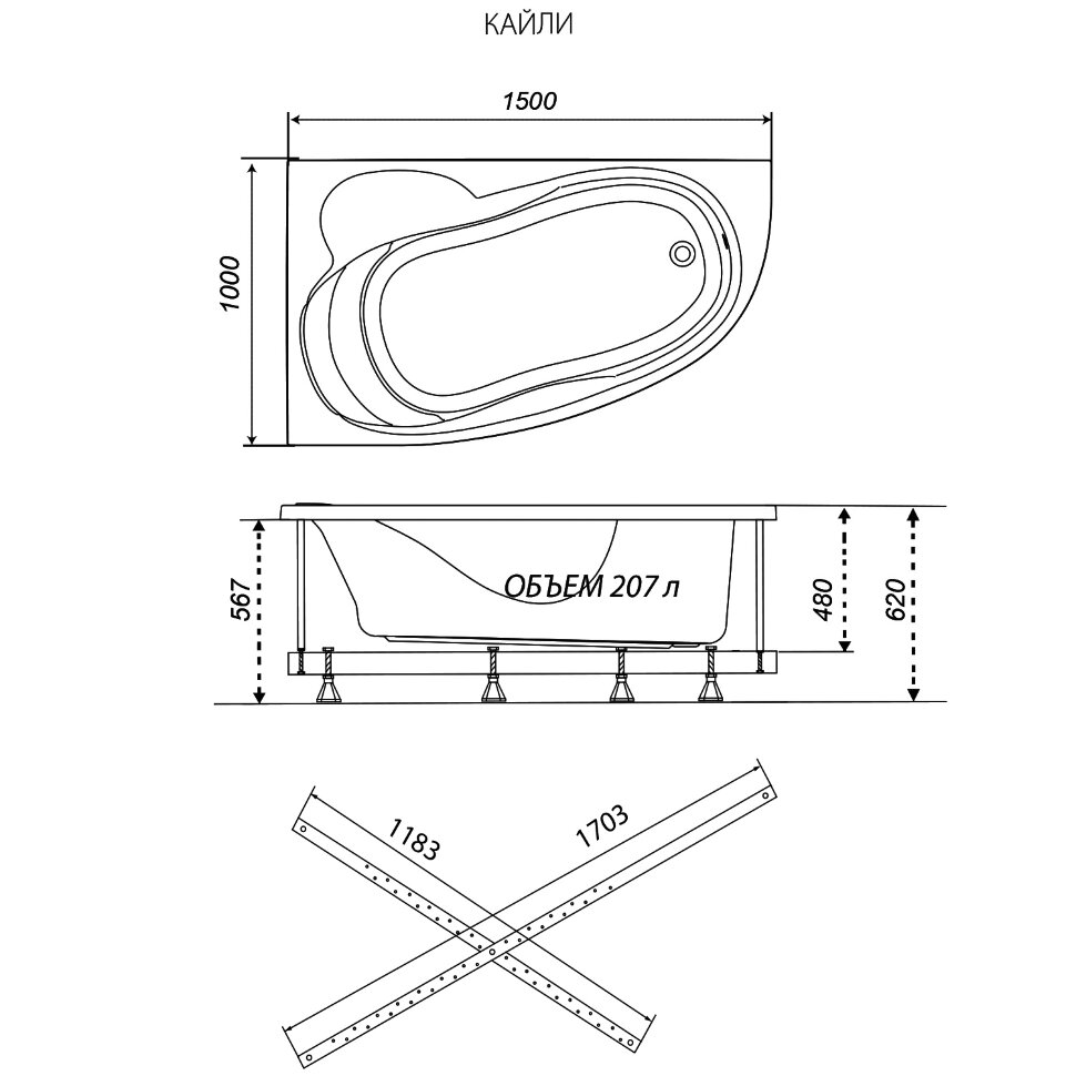 !!! Каркас для ванны, экран, слив-перелив с сифоном и карниз приобретаются отдельно
