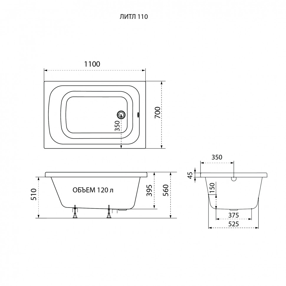 Акриловая ванна Triton Литл 110х70 см Щ0000072199