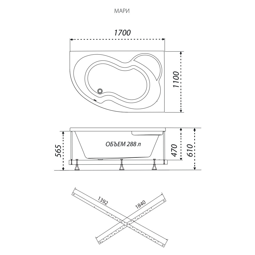 !!! Каркас для ванны, экраны, слив-перелив с сифоном и карниз приобретаются отдельно