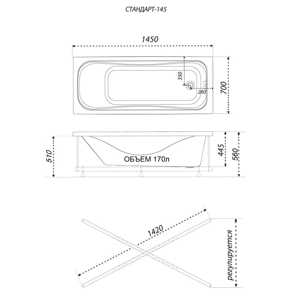 Акриловая ванна Triton Стандарт Экстра 145х70 см Щ0000017403