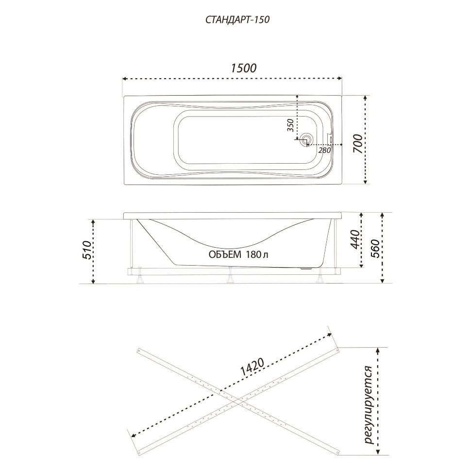 !!! Ножки для ванны или каркас, экран, слив-перелив с сифоном и карниз приобретаются отдельно
