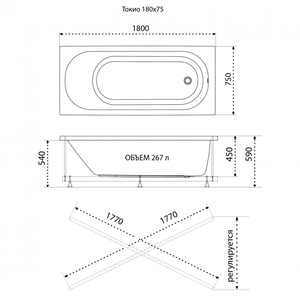 Акриловая ванна Triton Токио 180х75 см Щ0000063855