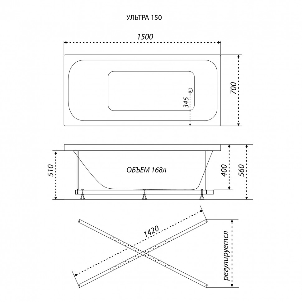 !!! Ножки или каркас для ванны, экран, слив-перелив с сифоном и карниз приобретаются отдельно