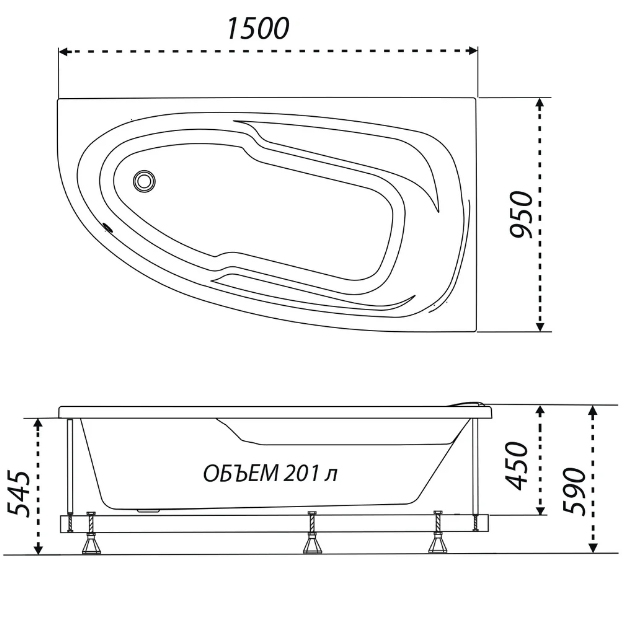 Асимметричная акриловая ванна 1ACReal Madrid 150х95 см L/R