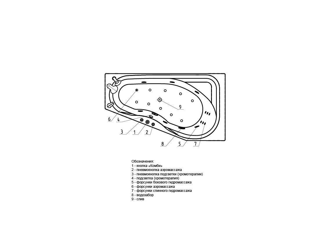 Гидромассаж пневматическое или электронное управление форсунки стандарт плоские, бронза