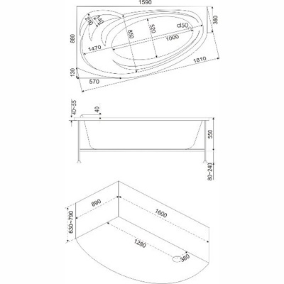 | Оснащение | Ванна+каркас/ отдельно заказываются слив-перелив, экран, г/м |