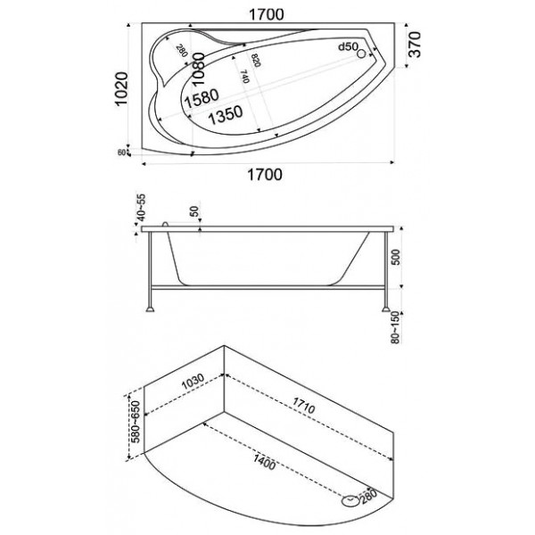 | Оснащение | Ванна+каркас/ отдельно заказываются слив-перелив, экран, г/м |