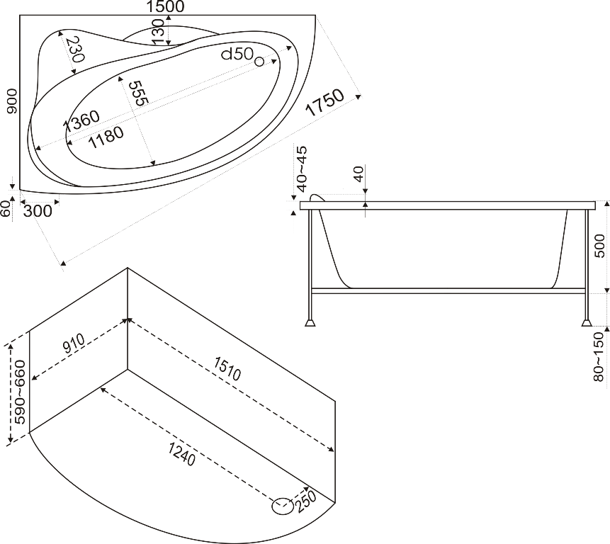 | Оснащение | Ванна+каркас/ отдельно заказываются слив-перелив, экран, г/м |
