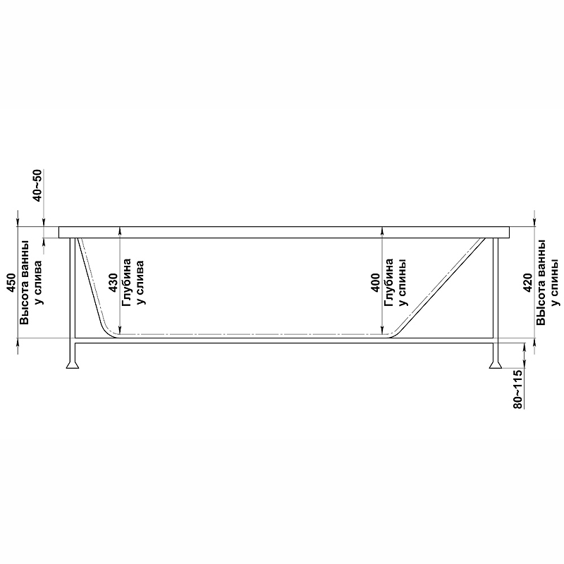 | Оснащение | Ванна+каркас/ отдельно заказываются слив-перелив, экран |
