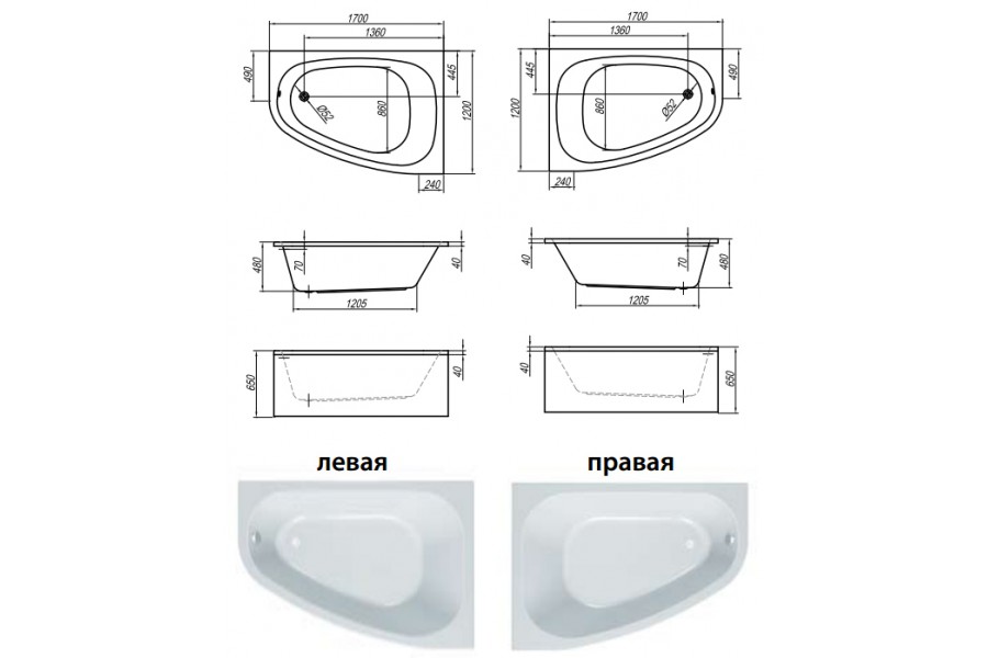 Асимметричная акриловая ванна Kolpa-san Chad 170х120 L/R, с каркасом, сливом-переливом