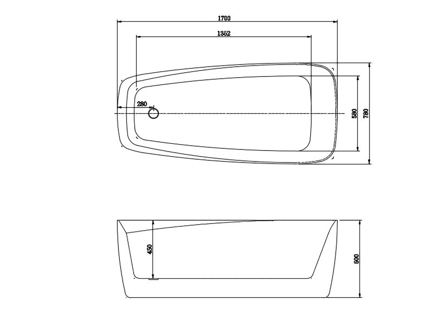 Отдельностоящая акриловая ванна Акватек Паола 170x78 см AQ-190778