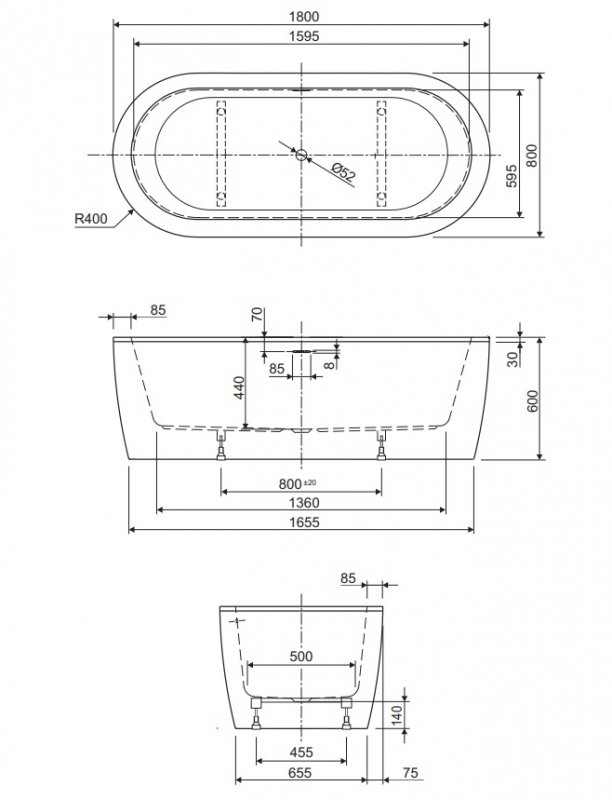 | Оснащение | Слив-перелив щелевой |
