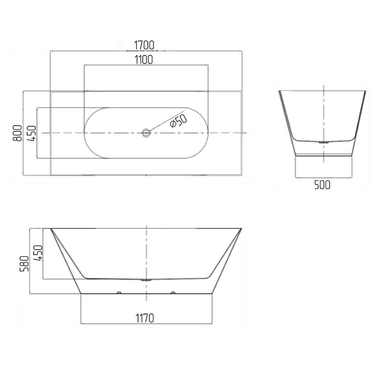 Отдельностоящая ванна Grossman Cristal 170х80 см белый глянцевый GR-2023