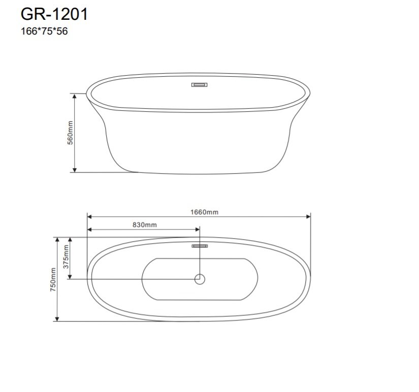 Отдельностоящая ванна Grossman Galaxy 166х75 см белый глянцевый GR-1201