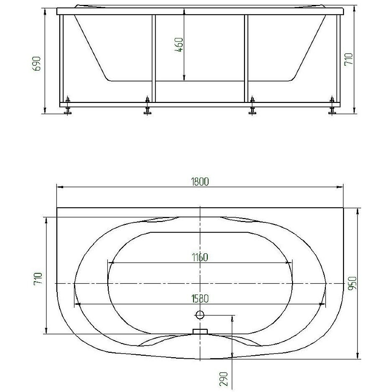 | Оснащение | Ванна, каркас, слив-перелив, фронтальный экран |