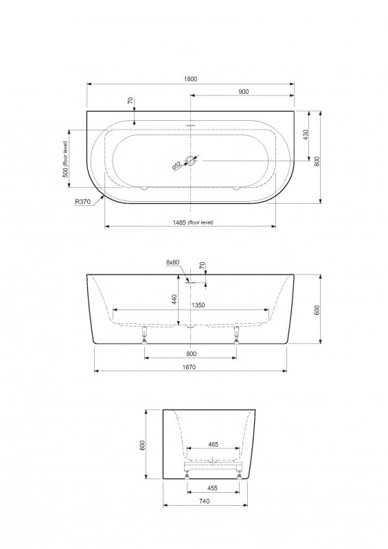 Пристенная акриловая ванна Cezares Metauro INT-WALL 180х80 см, черный матовый METAURO-INT-Wall-180-80-60-B-W-MATT