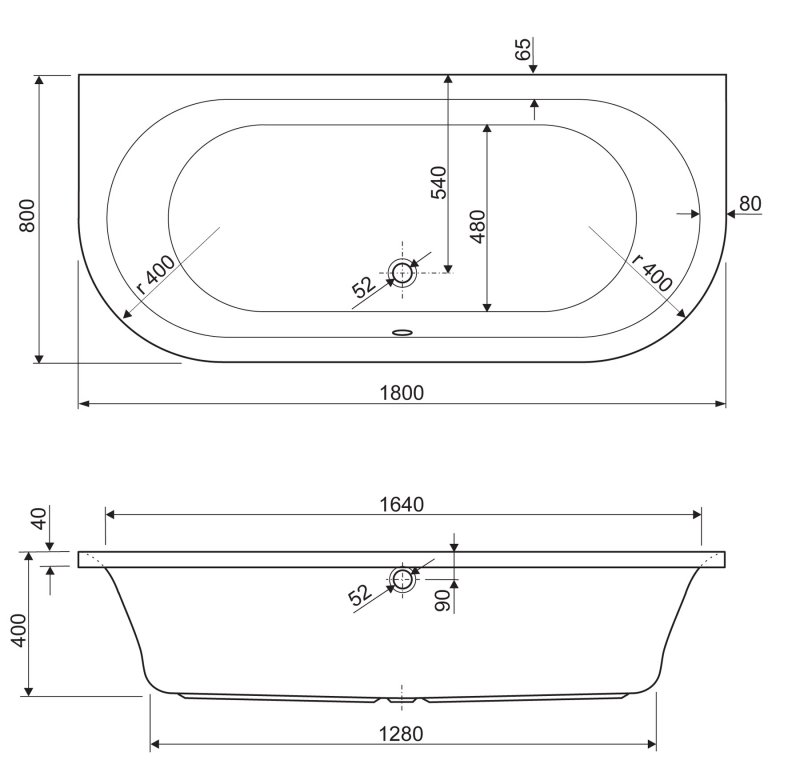 Пристенная акриловая ванна Cezares Metauro Wall 180х80 см METAURO-wall-180-80-40-W37
