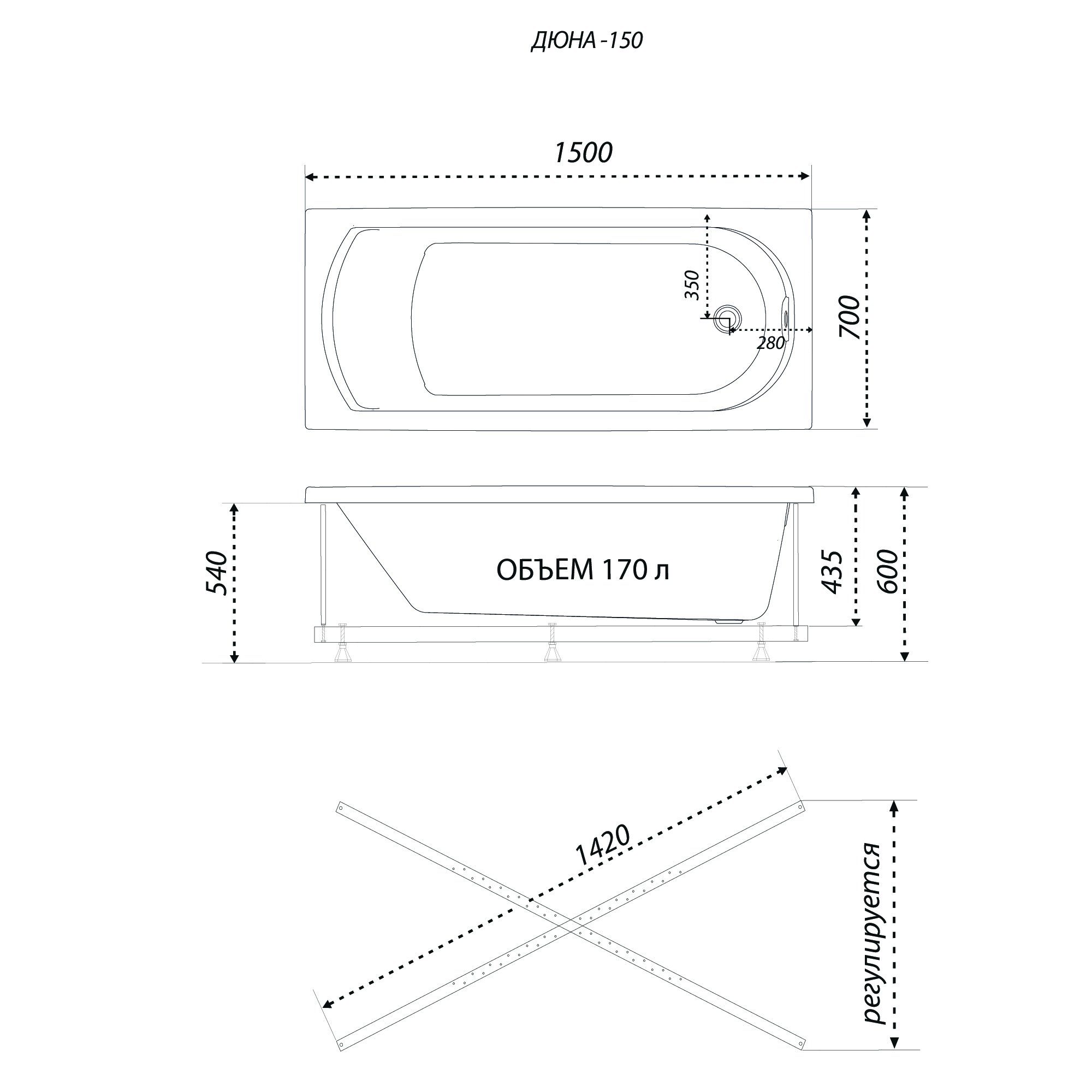 Прямоугольная акриловая ванна 1ACReal Dune 150х70 см Щ0000046111