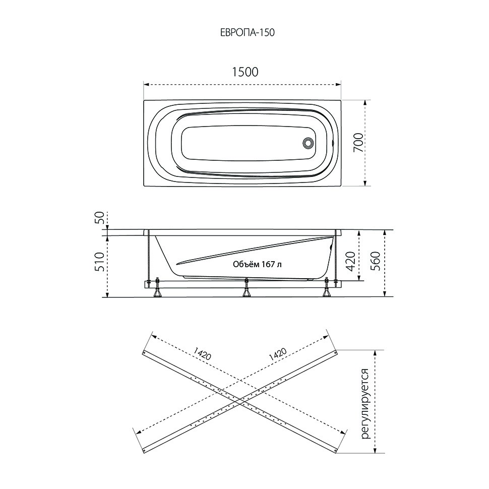 Прямоугольная акриловая ванна 1ACReal Europe 150х70 см Щ0000040926