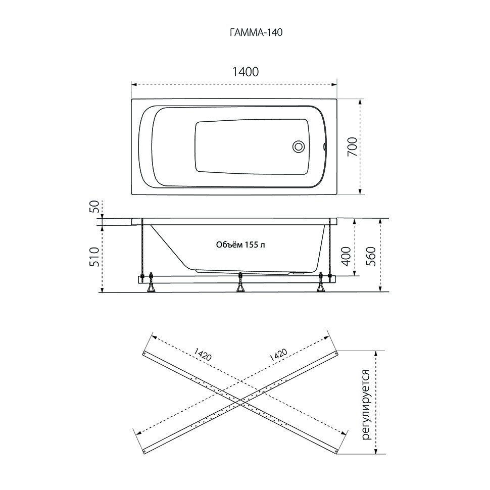 Прямоугольная акриловая ванна 1ACReal Gamma 140х70 см Щ0000025829