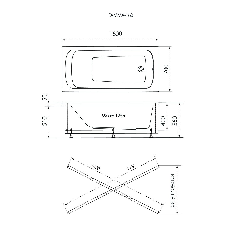 Прямоугольная акриловая ванна 1ACReal Gamma 160х70 см Щ0000028734